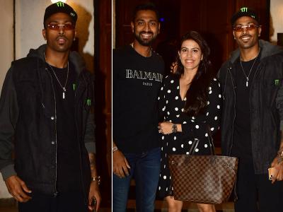 हार्दिक पंड्या को बड़े भाई क्रुणाल पंड्या और भाभी पंखुरी के साथ बांद्रा के एक रेस्त्रां में स्पॉट किया गया।
