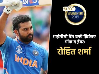 रोहित शर्मा को साल का सर्वश्रेष्ठ वनडे क्रिकेटर चुना गया है। रोहित ने साल 2019 में 28 वनडे  में 7 शतकों और 6 अर्धशतकों की मदद से 1490 रन बनाए थे, जबकि वर्ल्ड कप में उनके बल्ले से रिकॉर्ड 5 शतक के बूते 9 मैचों में 648 रन बनाए थे