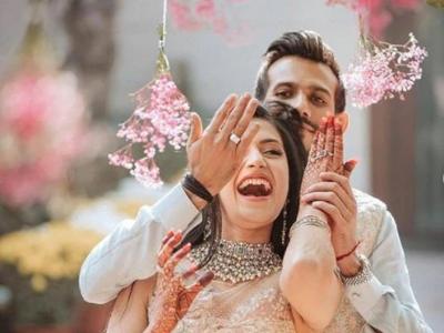 टीम इंडिया के दिग्गज बॉलर युजवेंद्र चहल ने शादी के एक दिन बाद अपनी सगाई की तस्वीरें सोशल मीडिया पर शेयर की हैं।