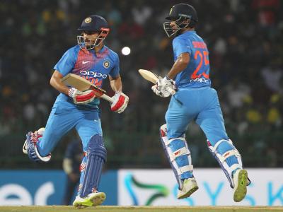 धवन ने 30 गेंदों पर 50 रन पूरे किए और फिर अपना सर्वोच्च व्यक्तिगत स्कोर (80) पार किया।