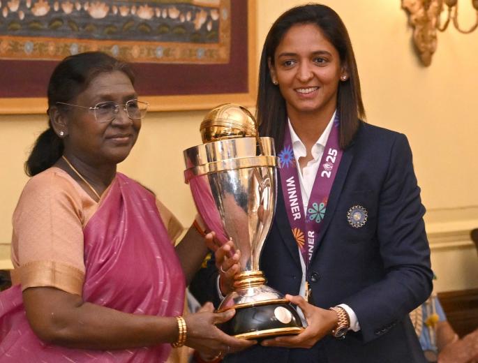 राष्ट्रपति द्रौपदी मुर्मू ने आईसीसी महिला वनडे विश्व कप विजेता टीम से मुलाकात की। (फोटो क्रेडिट - X)