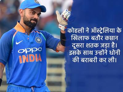 कोहली ने ऑस्ट्रेलिया के खिलाफ बतौर कप्‍तान दूसरा शतक जड़ा है। इसके साथ उन्‍होंने धोनी की बराबरी कर ली।