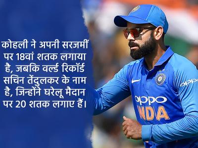 कोहली ने अपनी सरजमीं पर 18वां शतक लगाया है, जबकि वर्ल्ड रिकॉर्ड सचिन तेंदुलकर के नाम है, जिन्होंने घरेलू मैदान पर 20 शतक लगाए हैं।