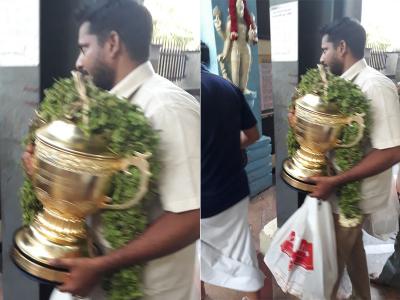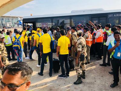 आईपीएल खिताब जीतने के बाद धोनी की टीम ट्रॉफी के साथ चेन्नई गई।