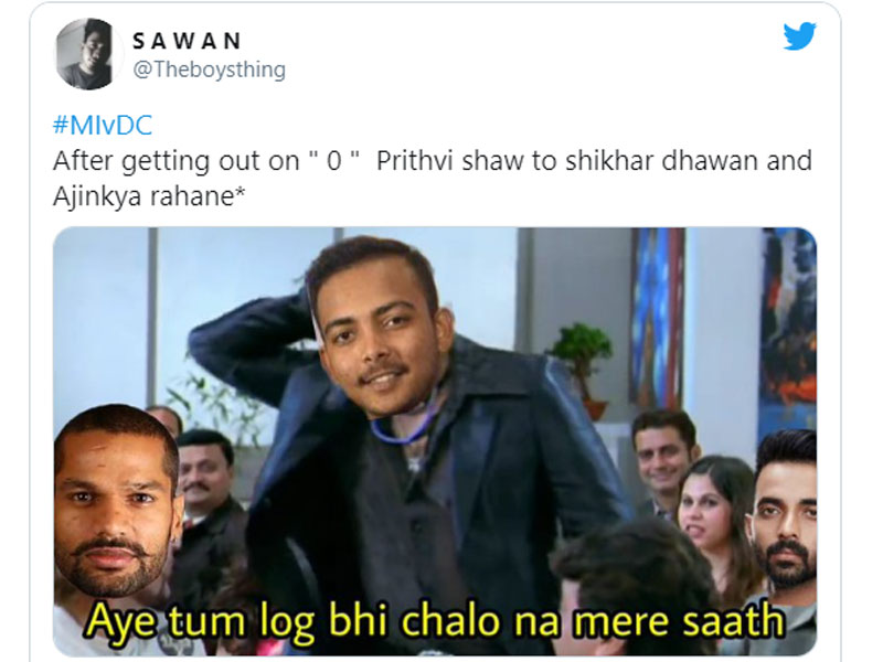 इस मुकाबले में दिल्ली के युवा बल्लेबाज पृथ्वी शॉ बगैर खाता खोले ही पवेलियन लौट गए।(फोटो: Twitter)