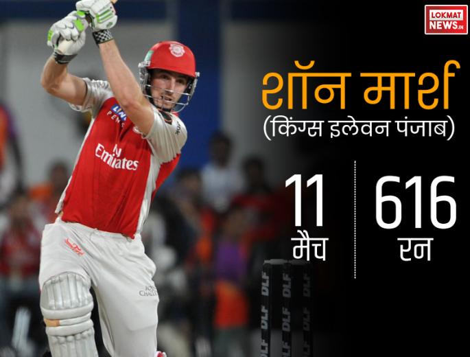साल 2008 में आईपीएल के पहले संस्करण में ऑस्ट्रेलिया के शॉन मार्श ने सबसे ज्यादा इन बनाते हुए ऑरेंज कैप हासिल किया। किंग्स इलेवन पंजाब के तरफ से खेलते हुए उन्होंने 11 मैचों में कुल 616 रन बनाए थे।