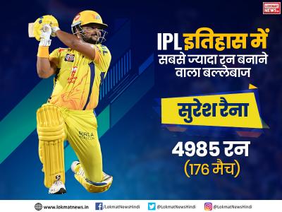 IPL इतिहास में सबसे ज्यादा रन बनाने वाला बल्लेबाज सुरेश रैना-4985 रन (176 मैच)