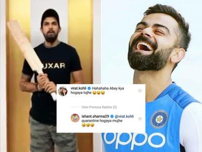 इशांत के इस अंदाज का मजाक उड़ाते हुए कोहली ने लिखा, 'हाहाहाहा...अबे क्या हो गया तुझे।' इसके जवाब में इशांत ने लिखा, 'क्वॉरंटाइन हो गया मुझे।'