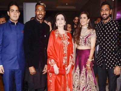 क्रुणाल पांड्या की शादी मुंबई के जुहू के जेडब्लू मैरियट होटल में हुई। इस शादी में पूरा अंबानी परिवार नजर आया।