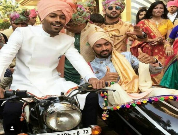 क्रुणाल भाई हार्दिक पांड्या के साथ बुलेट पर बारात लेकर पहुंचे थे। हार्दिक बुलेट चला रहे थे।