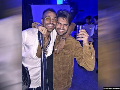 साक्षी की बर्थडे पार्टी में हार्दिक पंड्या मस्ती के मूड में नजर आए।