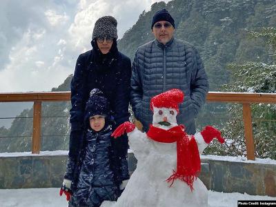 जहां उन्होंने पत्नी साक्षी और बेटी जीवा के साथ जमकर बर्फबारी का मजा उठाया।