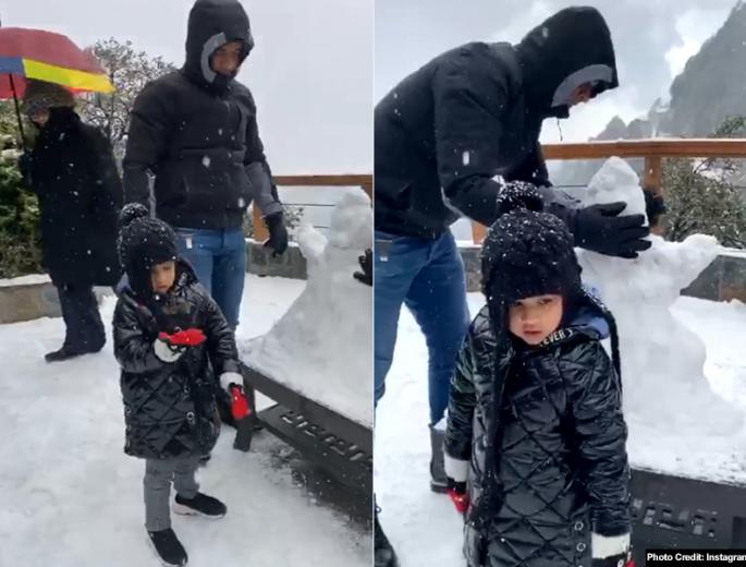 एमएस धोनी और जीवा का स्नोमैन बनाते हुए वीडियो साक्षी ने अपने इंस्टाग्राम पर लाइव किया।