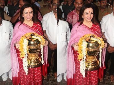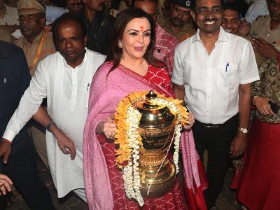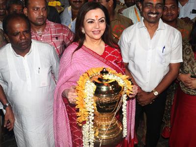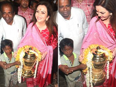 मुकेश अंबानी की पत्नी नीता अंबानी मुंबई इंडियंस की ट्रॉफी को लेकर सिद्धिविनायक मंदिर भी पहुंचीं।