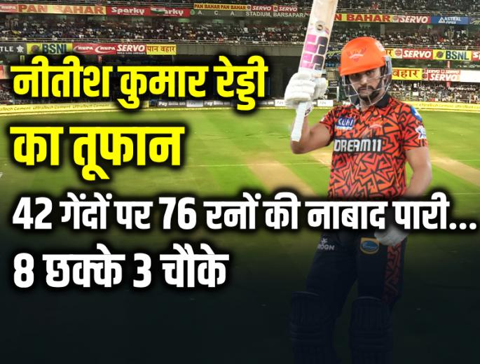 SRH vs RR: नीतीश कुमार रेड्डी ने 42 गेंदों में 8 छक्के और 3 चौकों की मदद से 76 रन बनाए...