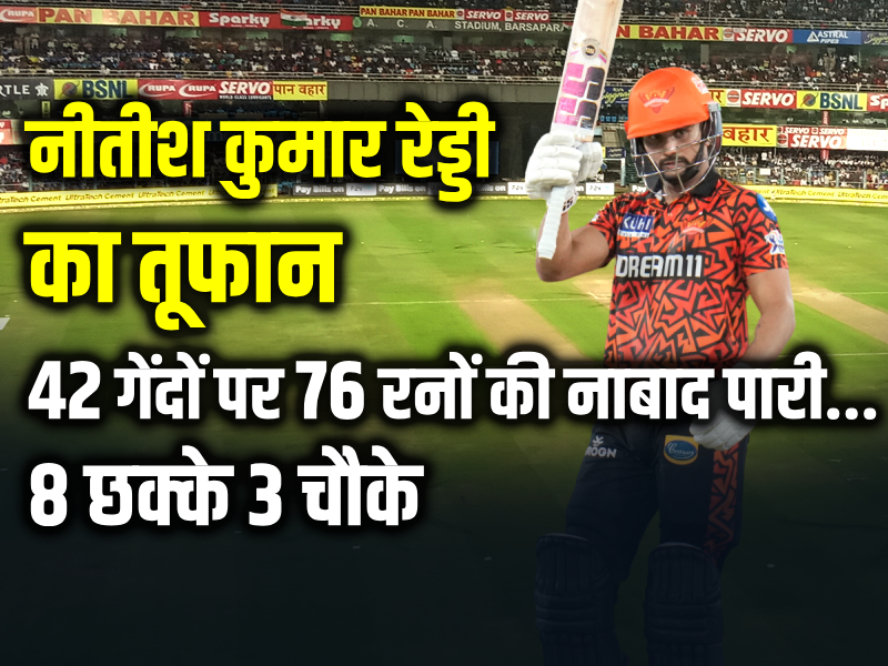 नितीश कुमार रेड्डी और ट्रेविस हेड के अर्धशतक से सनराजर्स हैदराबाद ने इंडियन प्रीमियर लीग में गुरुवार को यहां राजस्थान रॉयल्स के खिलाफ धीमी शुरुआत से उबरकर तीन विकेट पर 201 रन बनाए। नितीश ने 42 गेंद में आठ छक्कों और तीन चौकों से नाबाद 76 रन की करियर की सर्वश्रेष्ठ पारी खेली।