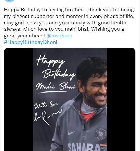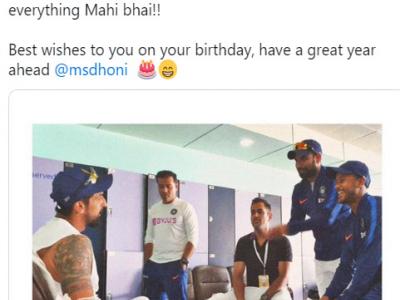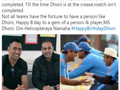 सहवाग ने अपने मजाकिया अंदाज में कहा कि जब तक धोनी क्रीज पर हैं, कोई भी मैच खत्म नहीं होता। उन्होंने लिखा, ‘‘जब तक ‘फुल स्टॉप’ नहीं आता तब तक वाक्य पूरा नहीं होता। उसी तरह जब तक धोनी क्रीज पर हैं, मैच खत्म नहीं होता। ’’ सहवाग ने ट्वीट किया, ‘‘सभी टीमों का भाग्य ऐसा नहीं है कि उनके पास धोनी जैसा खिलाड़ी हो। इतने शानदार व्यक्ति और खिलाड़ी एमएस धोनी को जन्मदिन मुबारक हो। ओम हेलीकॉप्टराय नम:। ’’ भारतीय आल राउंडर हार्दिक पंड्या ने धोनी के साथ आईपीएल 2022 की फोटो साझा की जिसमें वह उन्हें गले से लगा रहे हैं। उन्होंने लिखा,‘‘माही भाई आपको जन्मदिन की बधाई। ’’ (Photo Credit- Twitter)