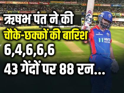 6,4,6,6,6 ऋषभ पंत ने की चौके-छक्कों की बारिश, 8 छक्के और 5 चौके, दिल्ली के अरुण जेटली स्टेडियम में...