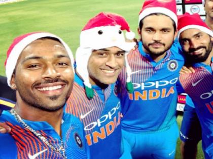 जीत के बाद जब धोनी बने सांता क्लॉज, इस खिलाड़ी ने पहनाई मिस्टर कूल को 'टोपी'