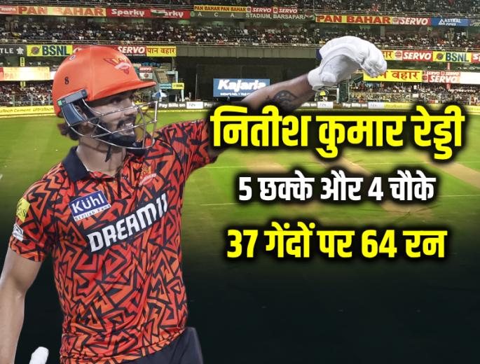 6,6,6,6,6 नितीश कुमार रेड्डी की तूफानी पारी, 37 गेंदों पर 64 रन, 5 छक्के और 4 चौके