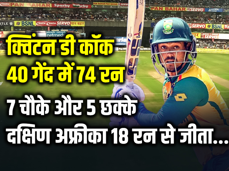 दक्षिण अफ्रीका ने सलामी बल्लेबाज क्विंटन डिकॉक (74 रन) के धमाकेदार अर्धशतक और कप्तान एडेन मार्कराम के साथ उनकी दूसरे विकेट के लिए 60 गेंद में 110 रन की साझेदारी से बुधवार को यहां टी20 विश्व कप सुपर आठ चरण के ग्रुप दो के अपने शुरूआती मैच में अमेरिका को 18 रन से शिकस्त दी। ग्रुप चरण के सभी मैच जीतने वाली दक्षिण अफ्रीका ने चार विकेट पर 194 रन का चुनौतीपूर्ण स्कोर खड़ा किया। पहली बार टूर्नामेंट के नॉकआउट में खेल रही अमेरिका की टीम की दाद देनी होगी जो एंड्रीयस गौस (नाबाद 80 रन, 47 गेंद) के अर्धशतक की बदौलत दक्षिण अफ्रीका को चुनौती देने की स्थिति में पहुंच गयी थी लेकिन उसे दूसरे छोर पर विकेट गिरने का खामियाजा भुगतना पड़ा।