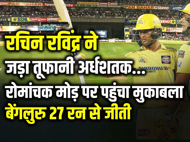 RCB vs CSK: रॉयल चैलेंजर्स बेंगलुरु (आरसीबी) ने शनिवार को यहां इंडियन प्रीमियर लीग (आईपीएल) के महत्वपूर्ण मैच में चेन्नई सुपर किंग्स (सीएसके) के खिलाफ 27 रनों से जीत दर्ज की। प्लेऑफ क्वालीफिकेशन की गणना के अनुसार आरसीबी को प्लेऑफ में जगह बनाने के लिए कम से कम 18 रन से जीत की जरूरत थी।