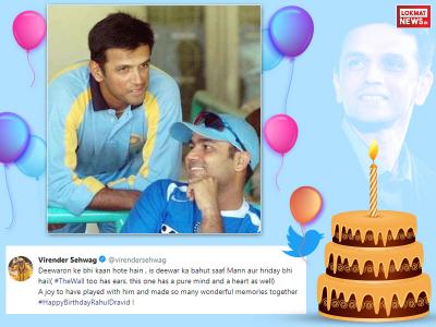 महान क्रिकेटर राहुल द्रविड़ शुक्रवार को अपना 46वां जन्मदिन मना रहे है। सहवाग ने अपने चिरपरिचित मजाकिया अंदाज में द्रविड़ को जन्मदिन की शुभकामनाएं देते हुए लिखा, 'दीवारों के भी कान होते हैं, इस दीवार का बहुत साफ मन और हृदय भी है!' उनके साथ खेलने और साथ में मिलकर कई शानदार यादों का हिस्सा बनना बेहतरीन है।'