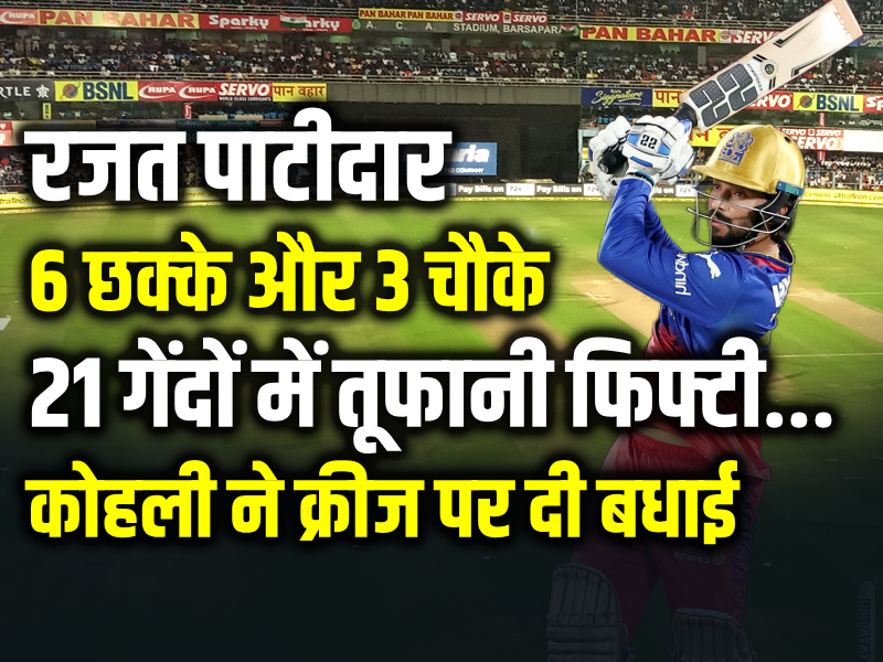 रजत पाटीदार 22 गेंदों में 55 बनाकर आउट हो गए, मैच बारिश के कारण कुछ देर के लिए रोका गया। (फोटो- इंस्टाग्राम)