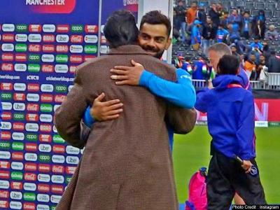 मैच के दौरान रणवीर थोड़ी देर कॉमेंट्री भी करते नजर आए थे। सूट-बूट पहने रणवीर मैच खत्म होने के बाद स्टेडियम में आते हैं और सबके सामने विराट कोहली को गले लगाकर जीत की बधाई देते हैं। इसके बाद दोनों कुछ बात करते हैं।
