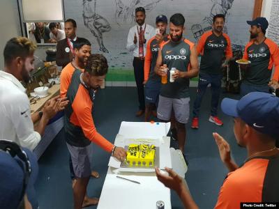 4 अक्टूबर को टीम इंडिया ने ऋषभ पंत का 21वां जन्मदिन राजकोट में बढ़ी धूम-धाम से मनाया।