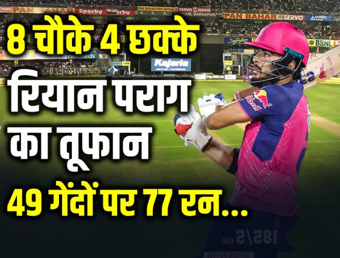 SRH vs RR: रियान पराग का तूफान, 8 चौके 4 छक्के, 49 गेंदों पर 77 रनों की शानदार पारी