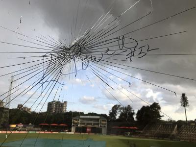 मैच के बाद प्रेस बॉक्स के टूटे कांच पर पावेल ने अपना ऑटोग्राफ भी दिया।