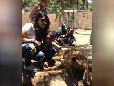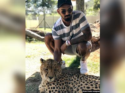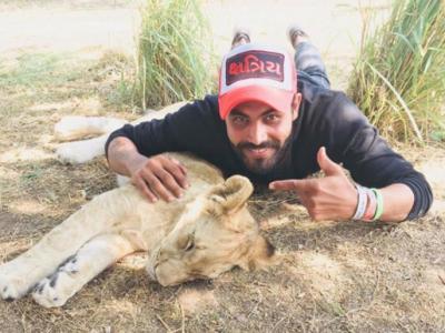 रविंद्र जडेजा शेर के बच्चे के साथ तस्वीर खिचवाते हुए