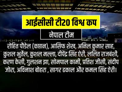 10-नेपाल टीम: रोहित पौडेल (कप्तान), आसिफ शेख, अनिल कुमार साह, कुशल भुर्तेल, कुशल मल्ला, दीपेंद्र सिंह ऐरी, ललित राजबंशी, करण केसी, गुलशन झा, सोमपाल कामी, प्रतिश जीसी, संदीप जोरा, अविनाश बोहरा , सागर ढकाल और कमल सिंह ऐरी।