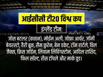 13ः इंग्लैंड टीम: जोस बटलर (कप्तान), मोईन अली, जोफ्रा आर्चर, जॉनी बेयरस्टो, हैरी ब्रूक, सैम कुरेन, बेन डकेट, टॉम हार्टले, विल जैक्स, क्रिस जॉर्डन, लियाम लिविंगस्टोन, आदिल राशिद, फिल सॉल्ट, रीस टॉपले और मार्क वुड।