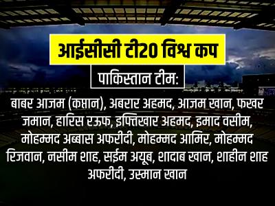 16-पाकिस्तान टीमः बाबर आजम (कप्तान), अबरार अहमद, आजम खान, फखर जमान, हारिस रऊफ, इफ्तिखार अहमद, इमाद वसीम, मोहम्मद अब्बास अफरीदी, मोहम्मद आमिर, मोहम्मद रिजवान, नसीम शाह, सईम अयूब, शादाब खान, शाहीन शाह अफरीदी, उस्मान खान