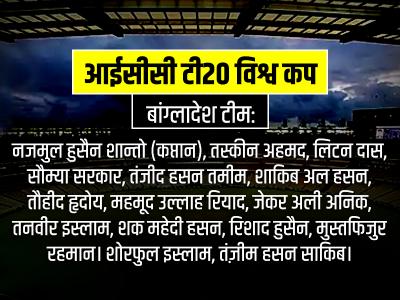 19- बांग्लादेश टीम: नजमुल हुसैन शान्तो (कप्तान), तस्कीन अहमद, लिटन दास, सौम्या सरकार, तंजीद हसन तमीम, शाकिब अल हसन, तौहीद हृदोय, महमूद उल्लाह रियाद, जेकर अली अनिक, तनवीर इस्लाम, शक महेदी हसन, रिशाद हुसैन, मुस्तफिजुर रहमान। शोरफुल इस्लाम, तंज़ीम हसन साकिब। रिजर्व: अफीफ हुसैन, हसन महमूद