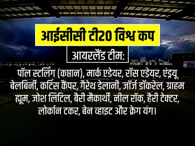 5- आयरलैंड टीम: पॉल स्टर्लिंग (कप्तान), मार्क एडेयर, रॉस एडेयर, एंड्रयू बेलबिर्नी, कर्टिस कैंपर, गैरेथ डेलानी, जॉर्ज डॉकरेल, ग्राहम ह्यूम, जोश लिटिल, बैरी मैकार्थी, नील रॉक, हैरी टेक्टर, लोर्कान टकर, बेन व्हाइट और क्रेग यंग।