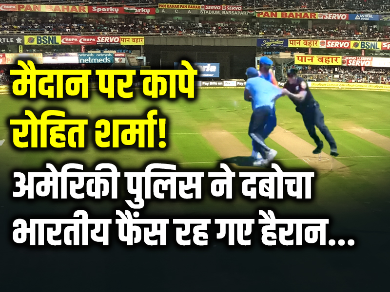 जी हां, मैच के बीच में ही सुरक्षा में ऐसी चूक हुई कि जिसका वीडियो अब सोशल मीडिया पर तेजी से वायरल हो रहा है। वायरल वीडियो में मैदान में एक फैन अचानक सुरक्षा में सेंध लगाकर पहुंच जाता है। वह शख्स रोहित शर्मा का इतना बड़ा फैन दिखाई दे रहा है कि वह सीधा रोहित शर्मा के पास जाता है। इस दौरान क्रिकेटर जब तक कुछ समझ पाते, तब तक अमेरिकी पुलिस दौड़कर शख्स को दबोच लेती है।