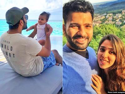 रोहित शर्मा अक्सर अपने इंस्टाग्राम पर अपनी बेटी और वाइफ के साथ तस्वीरें शेयर करते हैं।