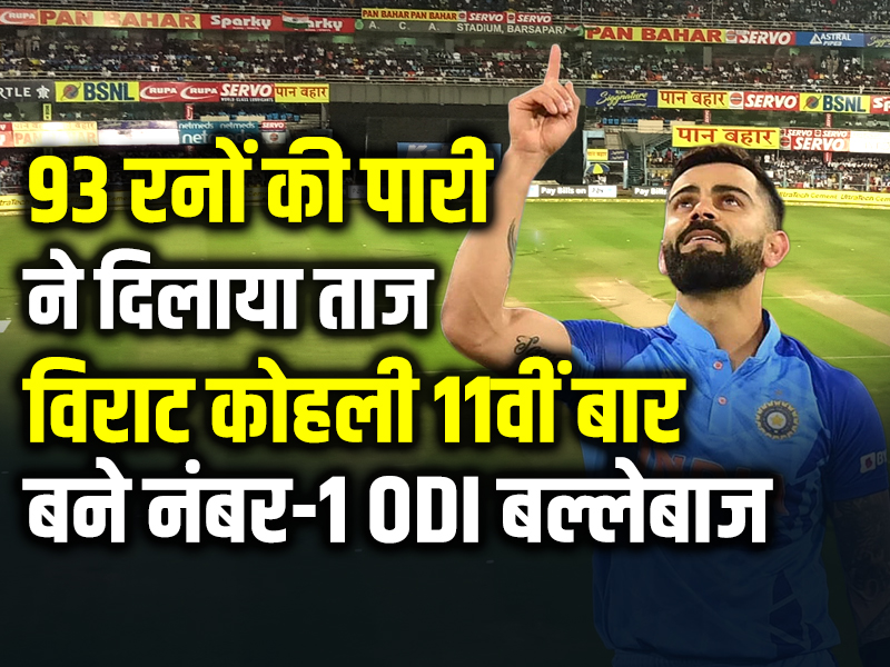 यह 37 वर्षीय बल्लेबाज जुलाई 2021 के बाद पहली बार नंबर एक रैंकिंग पर पहुंचा है। पहले वनडे में सस्ते में आउट होने के कारण पूर्व कप्तान रोहित तीसरे स्थान पर खिसक गए हैं। भारत ने रविवार को खेले गए पहले मैच में न्यूजीलैंड को चार विकेट से हराया था। इस मैच में कोहली ने 91 गेंदों पर 93 रन बनाए।
