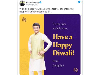बीसीसीआई के अध्यक्ष सौरव गांगुली ने भी सभी देशवासियों को दीपावली की शुभकामनाएं दी हैं। (फोटो: ट्विटर)