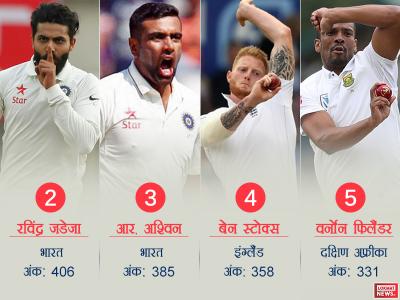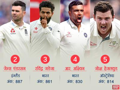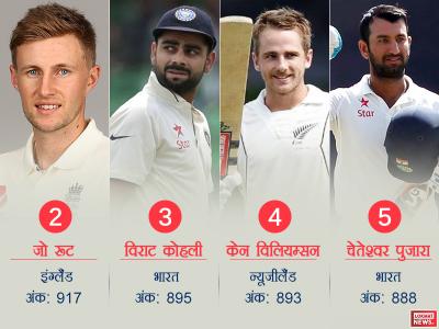 दक्षिण अफ्रीका के खिलाफ मिली हार के कारण भारतीय क्रिकेट टीम के कप्तान विराट कोहली और चेतेश्वर पुजारा अंतर्राष्ट्रीय क्रिकेट परिषद (आईसीसी) की ओर से जारी बल्लेबाजों की ताजा रैंकिंग में फिसल गए हैं। कोहली फिसलकर तीसरे स्थान पर पहुंच गए हैं, वहीं पुजारा पांचवें स्थान पर आ गए हैं। बता दें कि केपटाउन में दक्षिण अफ्रीका के खिलाफ खेली गई तीन टेस्ट मैचों की सीरीज के पहले मैच में भारत को 72 रनों से हार का सामना करना पड़ा था।गेंदबाजी में कगीसो रबादा ने एंडरसन को पीछे छोड़ादक्षिण अफ्रीका के गेंदबाज कगीसो रबादा ने इंग्लैंड के गेंदबाज जेम्स एंडरसन को एक अंक से पछाड़ते हुए अंतर्राष्ट्रीय क्रिकेट परिषद (आईसीसी) की टेस्ट गेंदबाजों की रैंकिंग में पहला स्थान हासिल कर लिया है। भारत के खिलाफ केपटाउन में खेले गए पहले टेस्ट मैच में दक्षिण अफ्रीका के खिलाफ मिली जीत में रबादा ने अहम भूमिका निभाई थी। इस प्रदर्शन के आधार पर रबादा ने पांच अंक हासिल किए और एंडरसन ने 887 अंकों की उपलब्धि को 888 अंक से पछाड़ते हुए टेस्ट गेंदबाजों की सूची में पहले स्थान पर काबिज हो गए।ऑलराउंडर की रैंकिंग में नहीं हुआ कोई बदलावटेस्ट के हरफनमौला खिलाड़ियों में शीर्ष-5 रैंकिंग में कोई बदलाव नहीं हुआ है। बांग्लादेश के शाकिब अल-हसन शीर्ष पर बरकरार हैं, वहीं रवींद्र जडेजा दूसरे और रविचंद्रन अश्विन तीसरे स्थान पर बने हुए हैं।