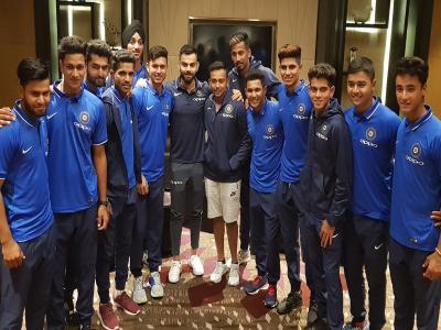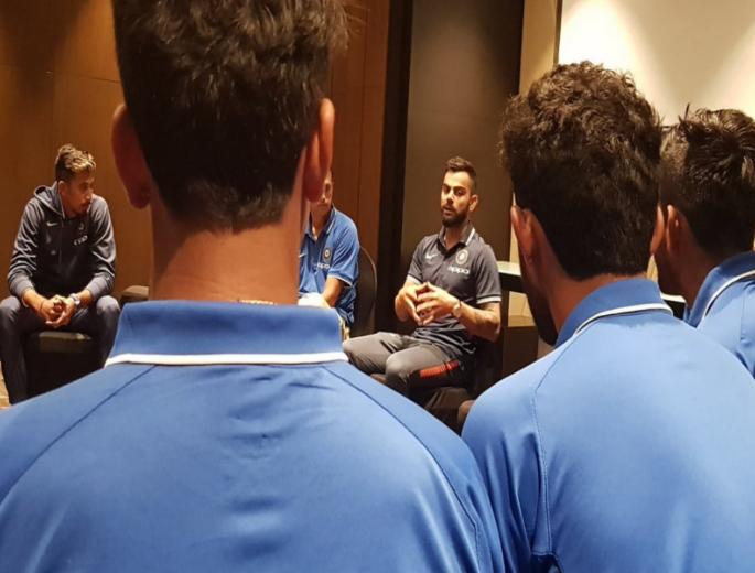विराट कोहली ने अंडर-19 विश्व कप के लिए चुने गए भारतीय टीम के खिलाड़ियों से मुलाकात की।