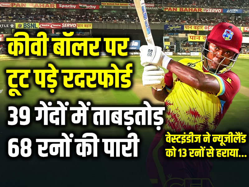अगर न्यूजीलैंड मैच हार जाता है तो आईसीसी विश्व कप 2024 से बाहर हो जाएगा। इससे पहले शेरफेन रदरफोर्ड ने कमाल की पारी खेली। 39 गेंद में 68 नाबाद रन कूट डाले। इस दौरान 2 चौके और 6 गगनचुंबी छक्के मारे। कीवी बॉलर को जमकर तोड़े। शेरफेन ने पारी को संभाला और संतोषजनक स्कोर पर ले गए।