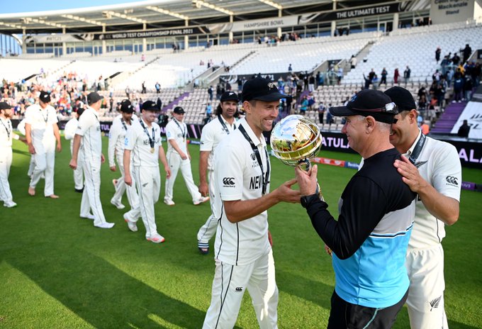 न्यूजीलैंड ने अपने दो सबसे अनुभवी बल्लेबाजों रोस टेलर और कप्तान केन विलियमसन की प्रतिबद्ध पारियों से भारत को आठ विकेट से हराकर पहली विश्व टेस्ट चैंपियनशिप (डब्ल्यूटीसी) का खिताब जीता। पहले और चौथे दिन का खेल बारिश की भेंट चढ़ने के कारण मैच छठे दिन तक खिंचा जो अंतरराष्ट्रीय क्रिकेट परिषद (आईसीसी) ने सुरक्षित दिन रखा था। गेंदबाजों ने भारत को दूसरी पारी में 170 रन पर समेट दिया और बाद में टेलर (100 गेंदों पर नाबाद 47) और विलियमसन (89 गेंदों पर नाबाद 52) की उत्कृष्ट पारियों से दो विकेट पर 140 रन बनाकर इतिहास रच दिया।