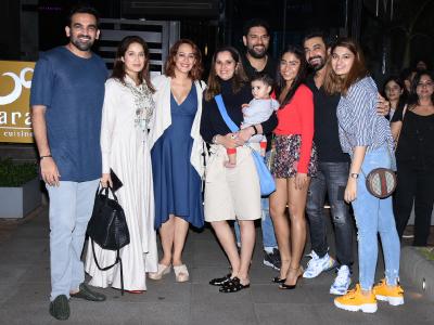 बॉलीवुड एक्ट्रेस सागरिका घाटगे अपने पति जहीर खान और पूर्व क्रिकेट युवराज सिंह अपनी पत्नी हेजल कीच और सानिया मिर्जा अपने बेटे के इजहान और बहन अनम मिर्जा के साथ मुंबई में पार्टी एन्जॉय करने के बाद साथ दिखे।