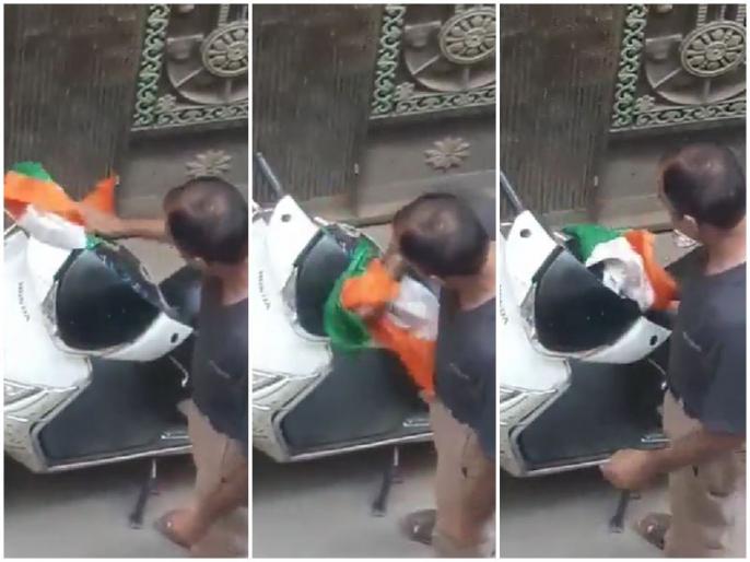 स्थानीय लोगों द्वारा घटना का एक कथित वीडियो सोशल मीडिया पर अपलोड किए जाने के बाद मामला सामने आया है। वीडियो में व्यक्ति को अपने सफेद स्कूटर को राष्ट्रीय ध्वज से साफ करते और उससे धूल झाड़ते देखा जा सकता है।