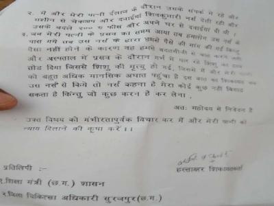 छत्तीसगढ़ सूरजपुर जिला: जांच करने व नवजात की गर्भ में ही मौत होने के मामले में प्रतापपुर के ब्लॉक मेडिकल ऑफिसर (BMO)राजेश श्रेष्ठ ने जांच शुरू कर दी है।