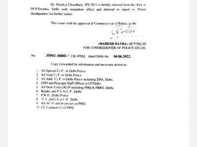 एक कथित वीडियो में उसने कहा कि यह मामला निजी था और इसे सुलझा लिया गया है। पुलिस ने मामले की अंदरूनी जांच शुरू की। एक आदेश में अस्थाना के कार्यालय ने कहा , ‘‘ 2011 के आईपीएस अधिकारी शंकर चौधरी को तत्काल प्रभाव से दिल्ली के पुलिस उपायुक्त (द्वारका) पद से मुक्त किया जाता है और उन्हें अगले आदेश तक पुलिस मुख्यालय में रिपोर्ट करने का निर्देश दिया जाता है।’’